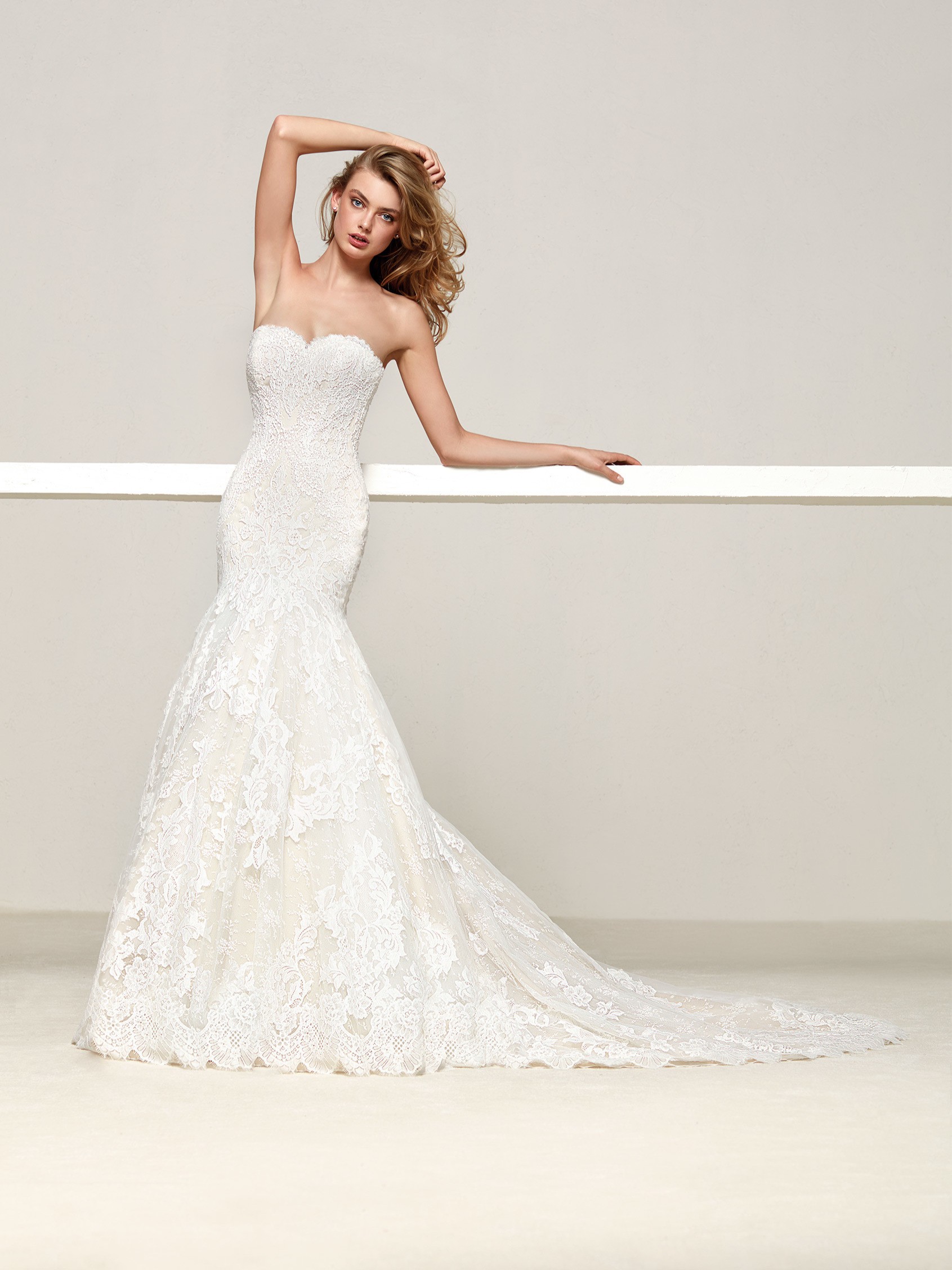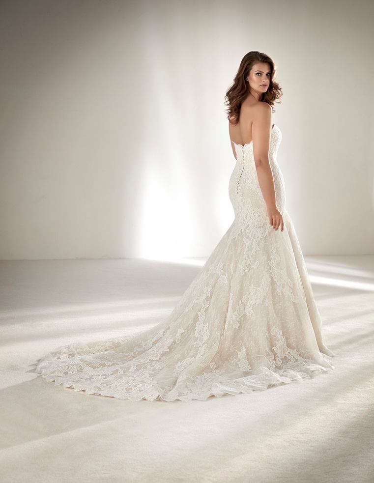 Model Druida z dielne Pronovias je dokonalou voľbou pre nevestu, ktorá túži po romantike, elegancii a jemne zmyselnom vzhľade. Šaty majú klasický korzetový strih, ktorý je celý bohato posiaty krásnou francúzskou čipkou, čím získavajú výnimočný, luxusný charakter.