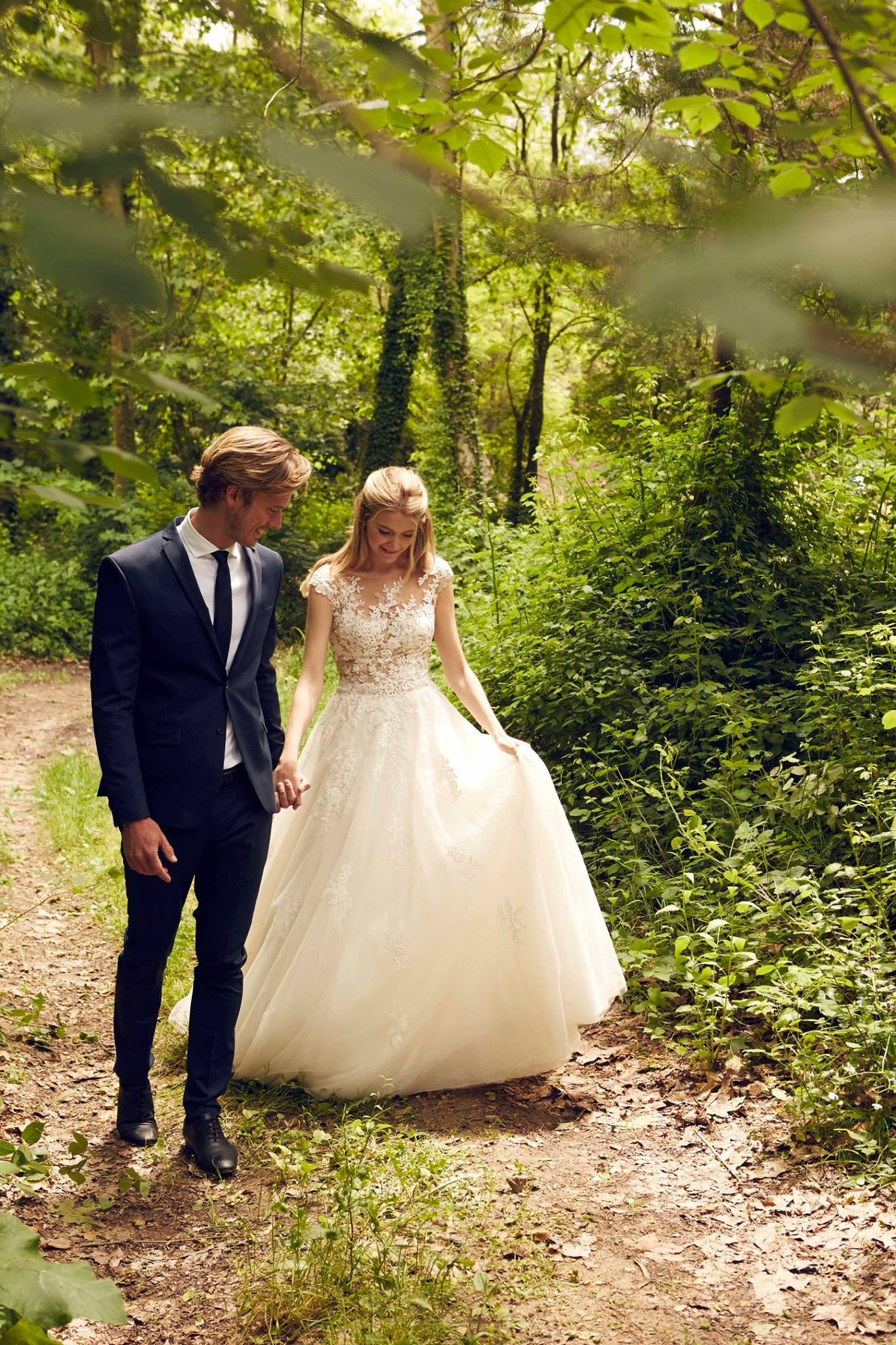 Dlhá vlečka dodáva šatám slávnostný charakter, no je zároveň vypínateľná, čo umožní neveste pohodlne tancovať a užiť si svadobný deň bez obmedzení.